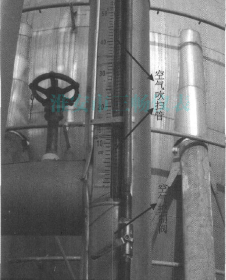 為了保證乙烯球罐安全穩定運行,投用初期磁翻板液面計結冰就很嚴重,開始以為是由于施工時保冷材料沒有安裝好、保冷材料的厚度不夠等原因造成的,因此對保冷材料全部重新安裝并增加了保冷材料的厚度,但效果不明顯。后又組織崗位操作工對耐酸堿磁翻板液位計上的冰定期進行人工清理,由于乙烯球罐容積大(1500m³),液位計長約12米,清理難度非常大,在清除作業過程中涉及高空等危險作業,增加了員工的工作危險性和勞動強度,而且經過人工清理的液位計在運行3~4小時后,又開始掛霜結冰,運行周期太短。另外每次在清除結冰的過程中,都會對磁翻板液面計和閥座有所損傷,*終可導致磁翻板液面計損壞報廢。后來又嘗試切斷液面計根部閥切斷,采用自然化冰的方式來清除掛冰,這樣雖然減小了操作工的勞動強度,但這種辦法除冰時間太長,對安全生產不利。為了徹底解決磁翻板掛冰的現象,經過反復論證,技術人員提出用工廠空氣進行吹掃的方案并在其中一具乙烯球罐上進行試驗。通過試驗發現用工廠空氣連續吹掃掛冰的液位計,基本能夠徹底解決耐酸堿磁翻板液位計掛冰。