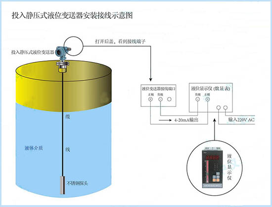 投入式液位變送器以其較高的精度,較低廉的價格及方便的安裝在水位測量中得到廣泛的應用。球罐用液位計的好壞對于高精度測量系統有著重要的意義。例如:傳感器內部受潮對傳感器造成嚴重破壞,粘貼的應變計的基底、基底間的粘接層尺寸發生變化,隨之應變計阻值發生變化,傳感器發生零點漂移、 絕緣不良甚至出現傳感器失效現象。實際應用中,因液位計失效引起產品不能正常工作,甚至不能工作的情況時有發生。因此,液位計的性能直接影響系統的準確性和穩定性。
