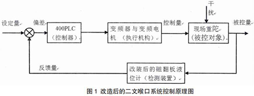從圖 1 中可以看到改造后的系統(tǒng)采用帶負反饋的閉環(huán)控制原理,通過反饋系統(tǒng)使系統(tǒng)的精確度提高,響應(yīng)時間縮短。當(dāng)受控客體受干擾的影響,其實際狀態(tài)與期望狀態(tài)出現(xiàn)偏差時,控制主體將根據(jù)這種偏差發(fā)出新的指令,以糾正偏差,抵消干擾的作用。