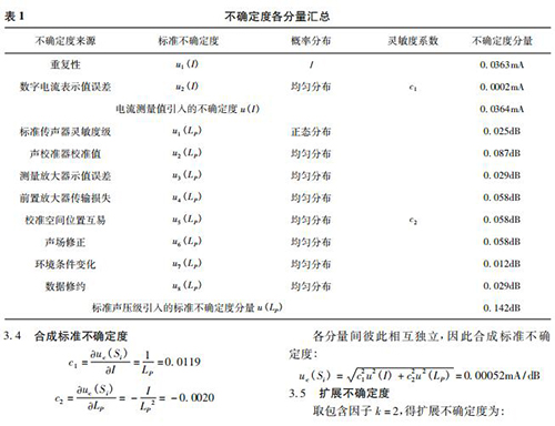 因此,乙醇液位計 1000Hz、聲壓級 84. 0dB 時電流輸出的聲壓靈敏度為 0. 1230mA/dB,測量結果的擴展不確定度為 0. 0011mA/dB。
