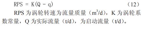 ①吸汽量。計算射孔層位吸汽量,可以通過六參數循環水液位計的渦輪流量計實現。忽略低流速時渦輪的非線性響應及密度對渦輪轉速的影響,則渦輪轉速 RPS 與流速成正比 :