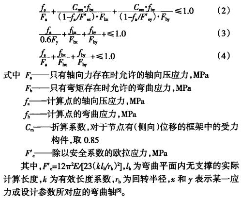 (2)UC值是美國ANSI/AISC《鋼結(jié)構(gòu)設(shè)計手冊》針對鋼結(jié)構(gòu)物體承受壓縮彎曲等多種組合載荷聯(lián)合作用時所采用的綜合機(jī)械強(qiáng)度性能的度量指標(biāo)。