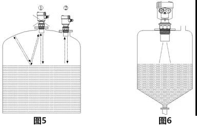 6、對于頂部為平面的錐形容器,污水池液位計應盡量安裝在頂部中央,這樣可以保證測量到容器底部,如圖6所示。