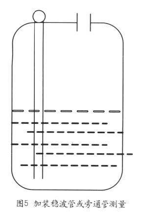 雷達液位計是按“俯視式”時間行程測量原理進行工作的,用于測量探頭安裝處到液位表面的間距。其結構非常簡單,主要由儀表外殼、過程連接和短桿天線組成。天線起始處有一將脈沖延遲發射100mm或250mm的屏蔽管,以確保測量不受安裝接管處冷凝或粘附的影響。其測試原理見圖1。