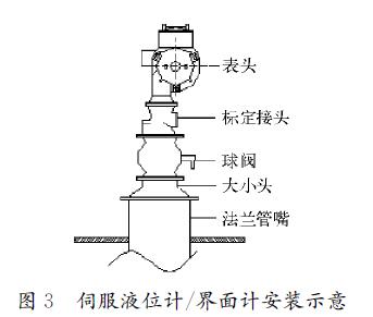 2.3 界面儀表界面測(cè)量方式:1)采用伺服界面計(jì),安裝示意如圖3所示;