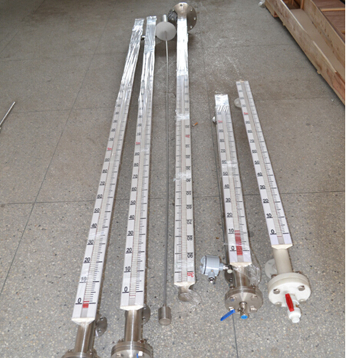 磁翻板液位計是本公司引進、吸收國外同類產品,并加以吸收、消化、提高,按原化學工業部頒布的磁性液位計標準T21584-95研制生產的產品。可用于各種塔、罐槽、球形容器和鍋爐等設備的介質液位檢測。該系列磁性液位計可以做到高密封,防泄漏和適應高壓高溫、腐蝕性條件下的液位測量,具有可靠的安全性,它彌補了玻璃板(管)液位計指示不清晰,易破碎的不足,不受高、低溫度劇變的影響,不需多組液位計的組合。全過程測量無盲區,顯示醒目、讀數直觀,且測量范圍大。特別是現場指示部分,由于不與液體介質直接接觸,所以對高溫、高壓、高粘度、有毒有害、強腐蝕性介質,更顯其優越性。因此,它比傳統的玻璃管,板式液位計具有更高的可靠性、安全性、先進性、實用性。