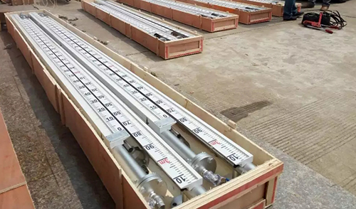 根據浮力原理,浮子在測量管內隨液位的升降而上、下移動,浮子內的永久磁鋼通過耦合作用,驅動紅、白色翻柱翻轉180°,液位上升時翻柱由白色轉為紅色,下降時由紅色轉為白色,從而實現液位指示。