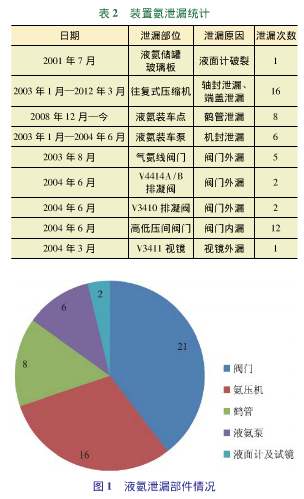 根據裝置長期運轉紀錄,泄漏部位的統計情況列于表2。液氨泄漏部件占比見圖1。