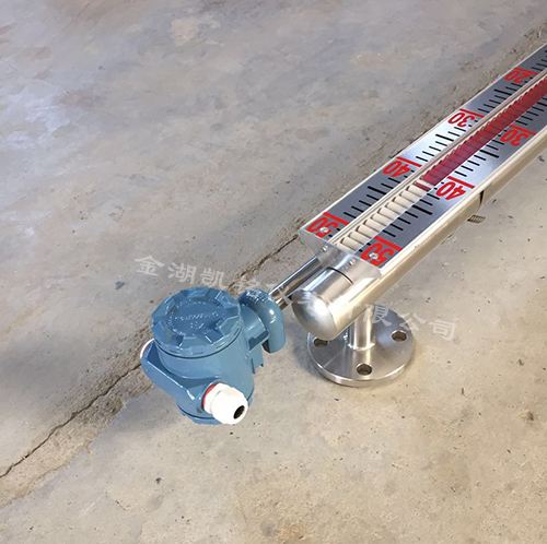 在浮子液位計上安裝變送器,通過浮子上下移動,經磁耦合作用使導桿內測量元件依次動作,獲得電阻信號變化,轉換成0~10mA或4~20mA的標準信號輸出,與顯示儀表或計算機連接,達到遠傳目的。